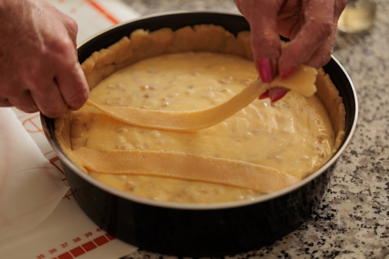 Włosi przywiązują dużą wagę do przygotowania nadzienia. Najpierw gotuje się pszenicę w mleku z dodatkiem masła, a następnie łączy ją z ricottą, jajkami i cukrem. Do masy dodaje się też kandyzowaną skórkę pomarańczową oraz charakterystyczny aromat wody z kwiatu pomarańczy, który nadaje ciastu wyjątkowy zapach. Nadzienie wylewa się na kruche ciasto, a na wierzchu układa paski ciasta w formie kratki. To bardzo charakterystyczny element wyglądu pastiery – podobnie jak w przypadku włoskiej crostaty. Po upieczeniu ciasto jest lekko złociste i pachnie cytrusami.