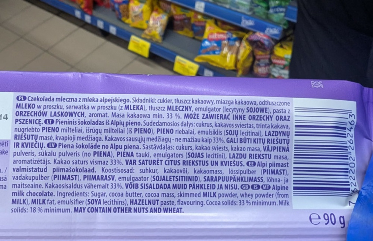 Na opakowaniu możesz zobaczyć coś, co wygląda jak czekolada mleczna, ale drobnym drukiem znajdziesz informację, że produkt z „polewy o smaku czekolady mlecznej” albo „wyrób kakaowy”. Brzmi podobnie, ale to zupełnie inna kategoria produktu. Im więcej tego typu komunikatów, które owijają w bawełnę, tym gorzej.