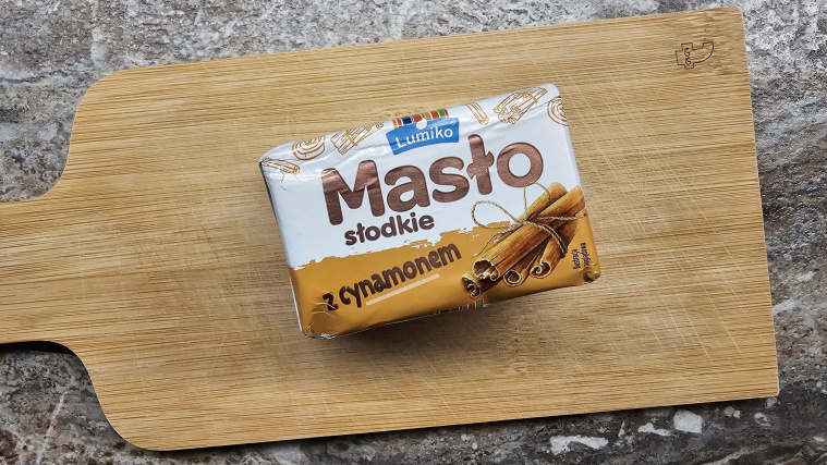 Masło o smaku cynamonu to nowość w Lidlu. Szukaj go w lodówkach, tam gdzie leżą inne masła i pasty kanapkowe. To produkt marki Lumiko, która jest znana z różnych wariantów masła. Z tym logo znajdziesz również między innymi masło czosnkowe, bez laktozy, z solą morską lub osełkę.