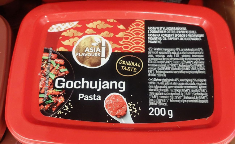 Koreańczycy traktują gochujang jako jedną z podstawowych przypraw, obok sojowej pasty doenjang i sosu sojowego ganjang. Gdybym miała ją opisać po swojemu, to powiedziałabym, że jest to coś pomiędzy pastą chili, a gęstym sosem. Teraz pojawiły się te czerwone pudełeczka w Biedronce i za 200 g trzeba zapłacić jedynie 7,99 zł.