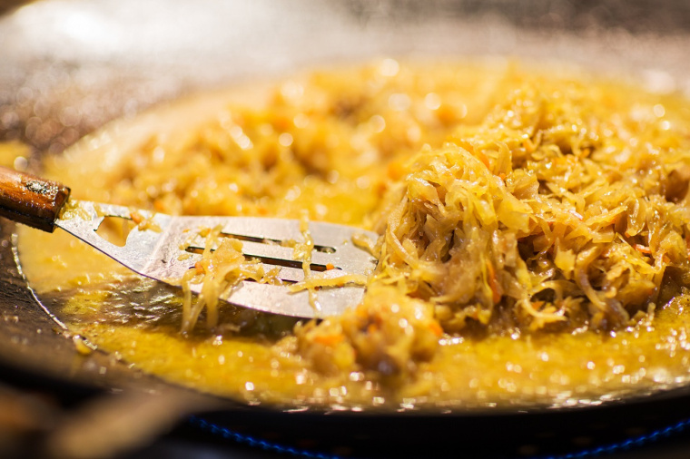 Wybierz kapustę dobrze ukiszoną – powinna mieć intensywny zapach, lekko chrupiącą strukturę i nie być zbyt kwaśna. Jeśli trafi ci się bardzo kwaśna, przepłucz ją pod bieżącą wodą, ale nie za długo, żeby nie wypłukać całego smaku. Unikaj tej mocno rozdrobnionej w plastikowych opakowaniach - często jest zbyt wodnista i mało wyrazista. Najlepiej sprawdzi się kapusta z beczki, ze słoika albo domowa.