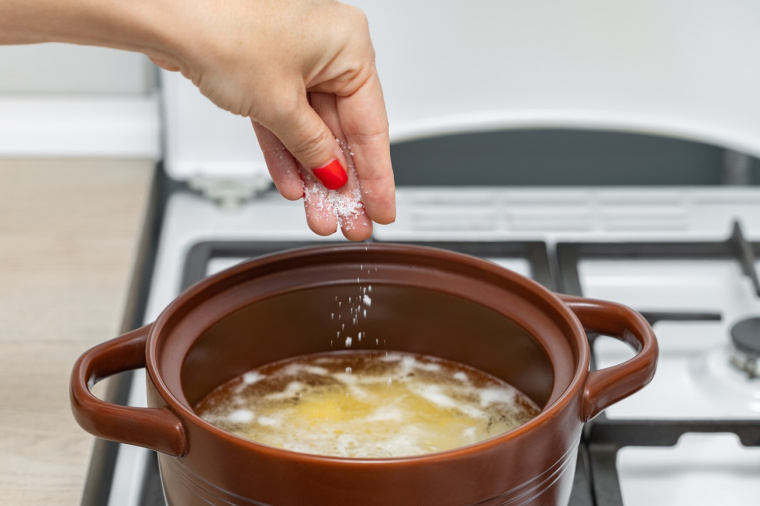 Jeśli masz wrażenie, że ziemniaki mimo przepisowego czasu nie zdążyły się dogotować, problemem może być ilość soli w wodzie. Zbyt duża ilość może spowodować, że ziemniaki wyjdą twarde. Sól w nadmiarze może uniemożliwiać wnikanie wody w głąb kartofli i zmiękczanie skrobi ziemniaczanej. Nie używaj soli do gotowania ziemniaków na oko - wiele osób to robi i sypie sól garściami lub szczyptami. Stosuj maksymalnie 2 łyżeczki soli na 1 litr wody. Taka ilość nie będzie przeszkadzać w mięknięciu.